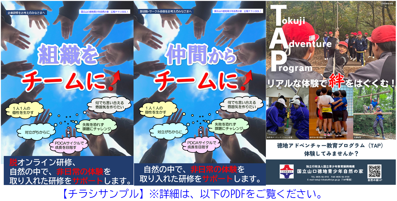 〇企業研修をお考えのみなさまへ(PDFファイルが開きます 1.54MB)〇部活動・サークル合宿をお考えのみなさまへ(PDFファイルが開きます 1.55MB)
