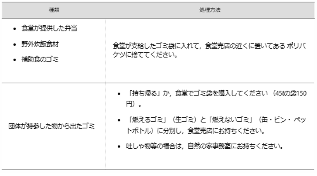 なお,食事や教材費等は食堂へ外部委託していますので,国立山口徳地青少年自然の家(以下
