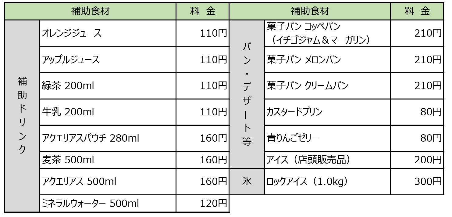 活動教材,補助食,野外炊飯の食材,注文弁当の受け取りは売店になります。売店は,食堂棟にあります。営業時間は9:30~16:00です。