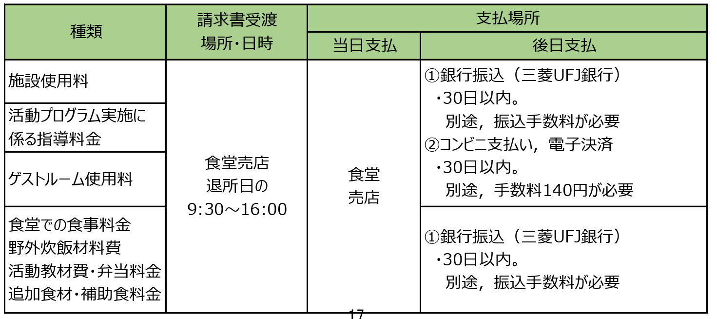 ③退所の前日に,請求書が必要な場合及び支払いを済ませたい場合は,自然の家にご連絡