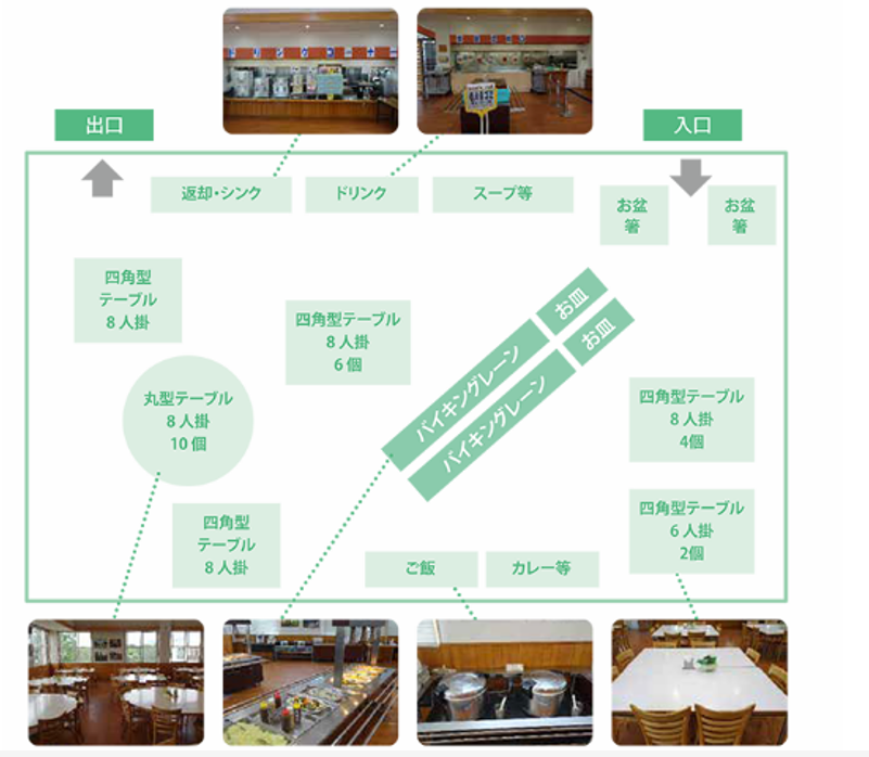 ①座席数は180席です。②三食ともビュッフェ形式によるセルフサービスです。