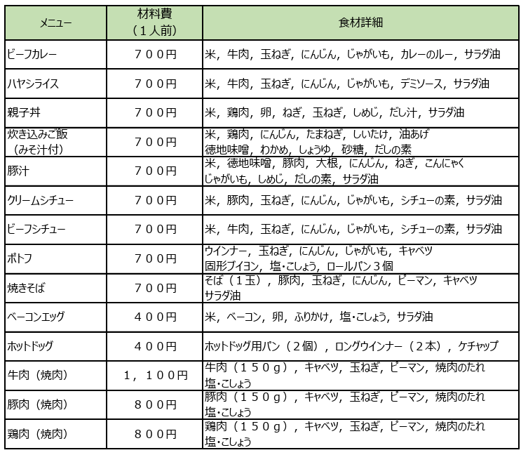 市販されている消費期限が喫食される日まで保証されている食材をご準備ください。