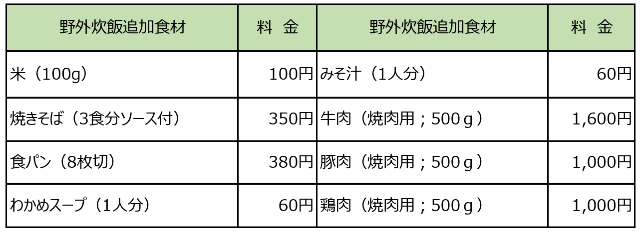 ④野外炊飯・お弁当につきましては、アレルギー対応ができません。